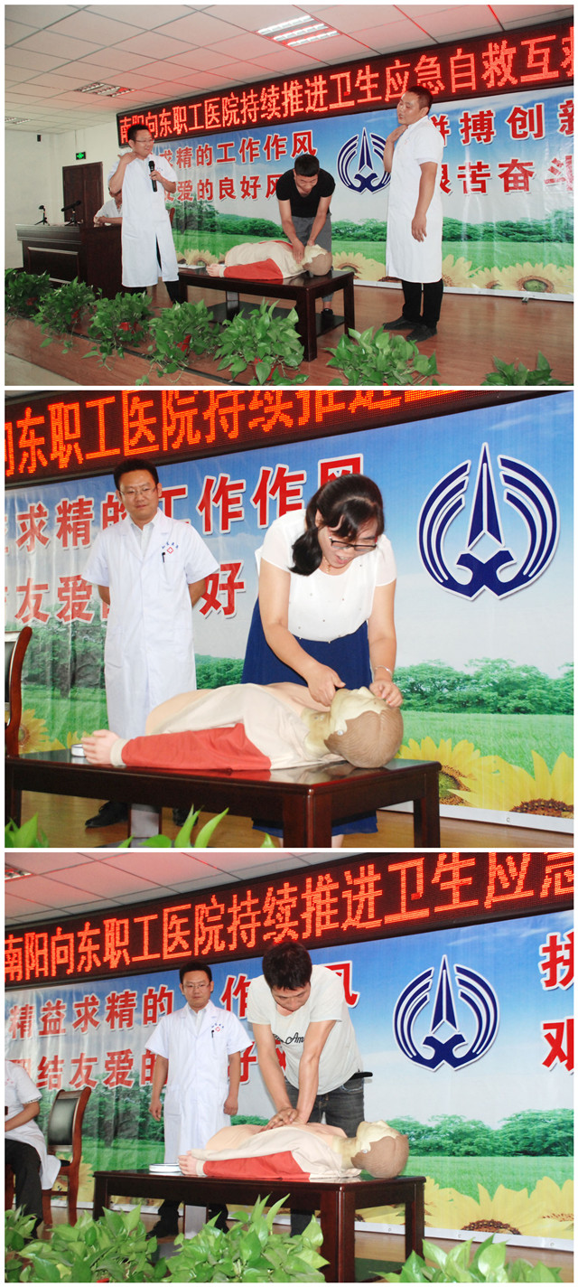 ? ? 為進(jìn)一步提高公司廣大干部職工的公共衛(wèi)生素養(yǎng),全面普及、預(yù)防、避險(xiǎn)、自救、互救等衛(wèi)生應(yīng)急知識(shí)技能,8月28日,南陽(yáng)向東職工醫(yī)院公共衛(wèi)生應(yīng)急小組一行6人來到南陽(yáng)向東工業(yè)園,為園區(qū)干部職工開展心臟驟停單人心肺復(fù)蘇術(shù)應(yīng)急自救知識(shí)講座。
