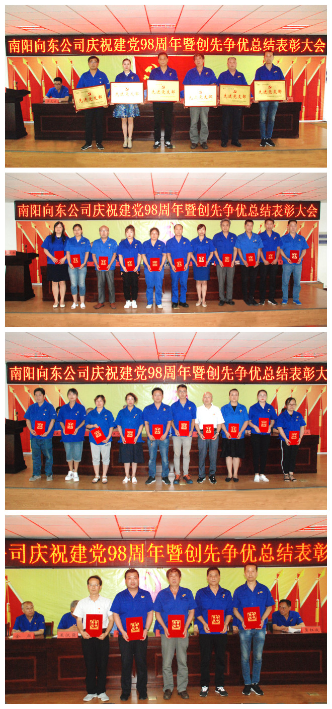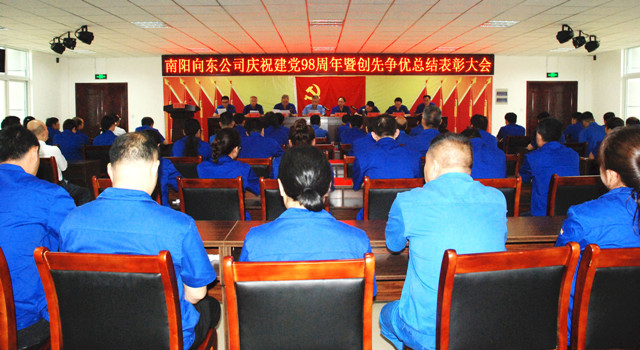 ? ? 6月28日,南陽向東公司在向東工業(yè)園隆重召開慶祝建黨98周年暨創(chuàng)先爭優(yōu)總結表彰大會。公司領導喬新濤、姜華、王漢臣、郭方、金燕、丁玨、李允東、冀紅波以及來自公司各單位70余名黨員、入黨積極分子參加會議。會議由黨委委員、紀委書記王漢臣主持。