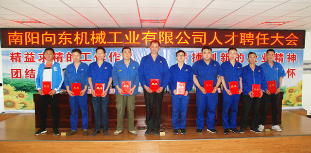 ? ? 監(jiān)事會主席王漢臣宣讀了聘任文件。大會聘任劉飛等5人為“科技骨干”、李凱歌等5人為“管理骨干”、劉中等10人為“技能骨干”,隨后大會為各類人才頒發(fā)了聘任證書。科技骨干劉飛代表全體骨干人員作發(fā)言。