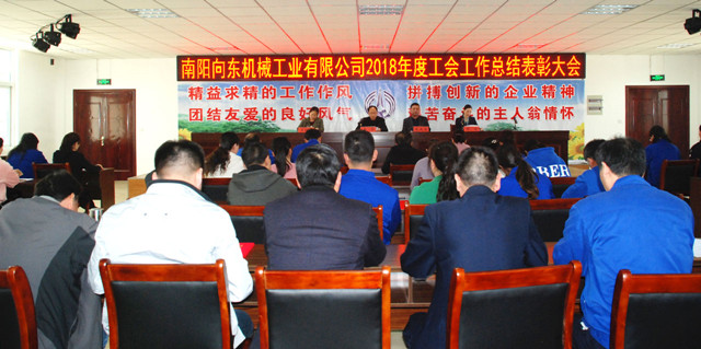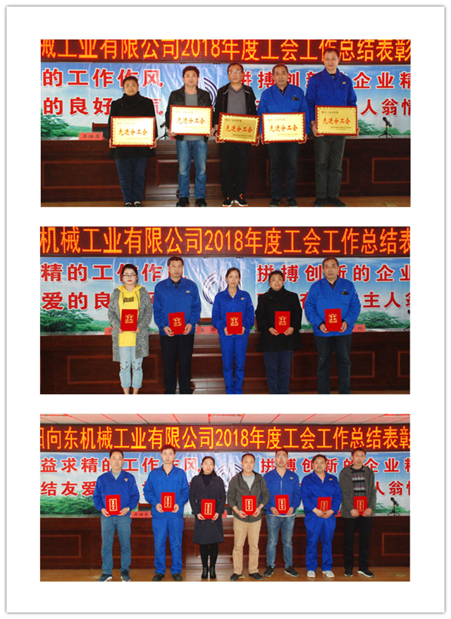? ? 黨群工作部部長吳維芳宣讀了《關(guān)于表彰2018年度工會工作先進(jìn)集體和先進(jìn)個人的決定》。決定授予河南向東機(jī)電設(shè)備有限公司、鄭州向東機(jī)械裝備有限公司等5個單位“先進(jìn)分工會”榮譽(yù)稱號;授予張躍靈、畢國鋒等5名同志“優(yōu)秀工會工作者”榮譽(yù)稱號;授予任琳琳、田勇等22名同志“優(yōu)秀會員”榮譽(yù)稱號;授予吳國華、常延萍等10名同志“優(yōu)秀女職工”榮譽(yù)稱號;授予胡銘、楊學(xué)義等3名同志“工會之友”榮譽(yù)稱號。大會為先進(jìn)集體和先進(jìn)個人頒發(fā)了榮譽(yù)證書。