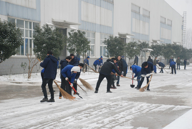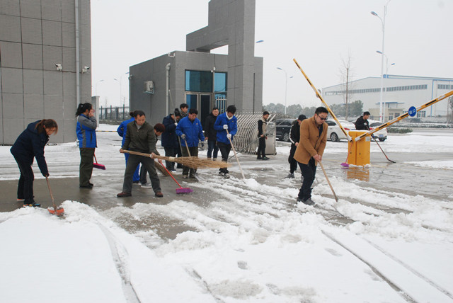 ? ? 1月9日,南陽(yáng)迎來(lái)了新年的第一場(chǎng)雪,向東工業(yè)園被厚厚的積雪覆蓋,給職工上下班帶來(lái)諸多不便和安全隱患。為保障安全,方便出行。1月10日,在公司辦公室和后勤管理部的精心組織下,園區(qū)全體職工進(jìn)行了義務(wù)掃雪活動(dòng)。