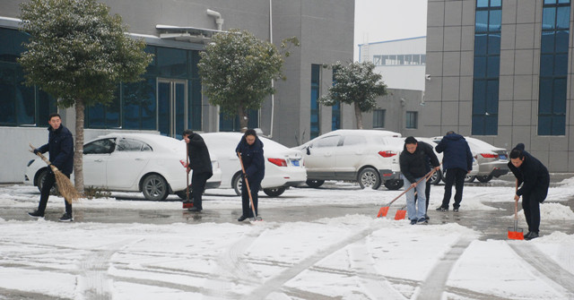 ? ? 上午9時(shí),在董事長(zhǎng)、總經(jīng)理喬新濤的帶領(lǐng)下,園區(qū)全體職工,不畏風(fēng)寒,積極投身到掃雪隊(duì)伍中,大家齊心協(xié)力,配合默契,揮舞著鐵鍬和掃帚,你鏟我掃,一派熱火朝天的景象,一點(diǎn)點(diǎn)地將積雪鏟起集中堆放。盡管大家的臉都凍得通紅,但手中的掃雪工具卻不停地?fù)]舞著,忙得渾身是汗,在歡聲笑語(yǔ)中掃出了干凈的廠區(qū)和暢通的大道。